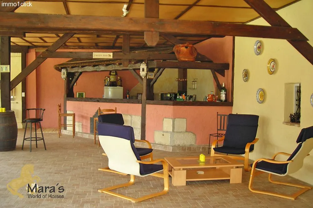 Around the property there are 14 acres (56.000 sqm) of fully fenced land, stocked carp lake with a fishing cabin for all the equipment, a mosaic tiled plunge pool measuring 8 metres by 4 metres, a solar powered pool shower, enclosed summer terrace of 125 square metres with fitted kitchen/bar area, cloakroom and electric sun blinds.