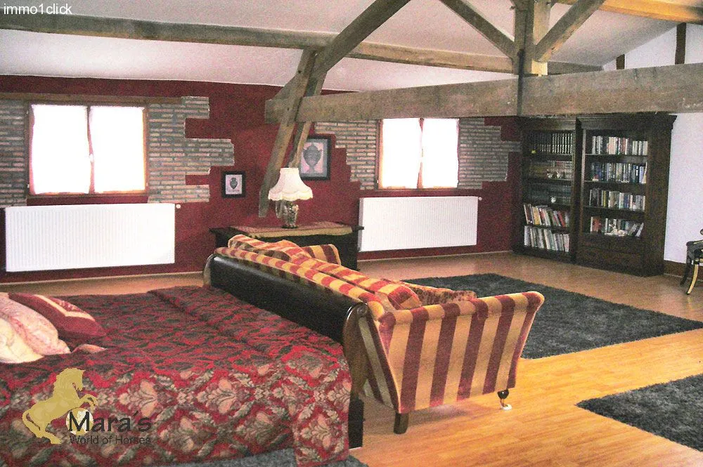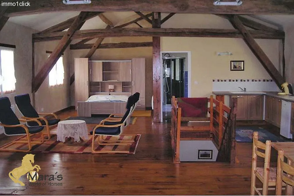The property also includes a renovated ‘sechoir’ or tobacco drying barn which provides, on the upper floor, a fully fitted open plan loft style apartment of 105 square metres, including a small gym and a modern infra-red double sauna. On the ground floor a large garage and workshop of the same size with remote electric doors.